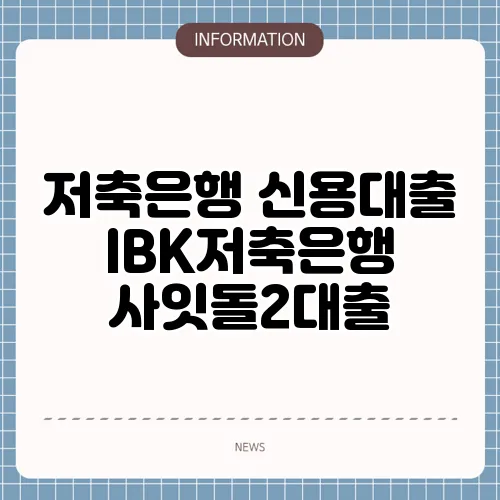 저축은행 신용대출 IBK저축은행 사잇돌2대출
